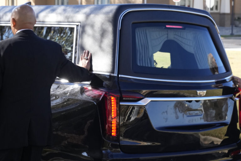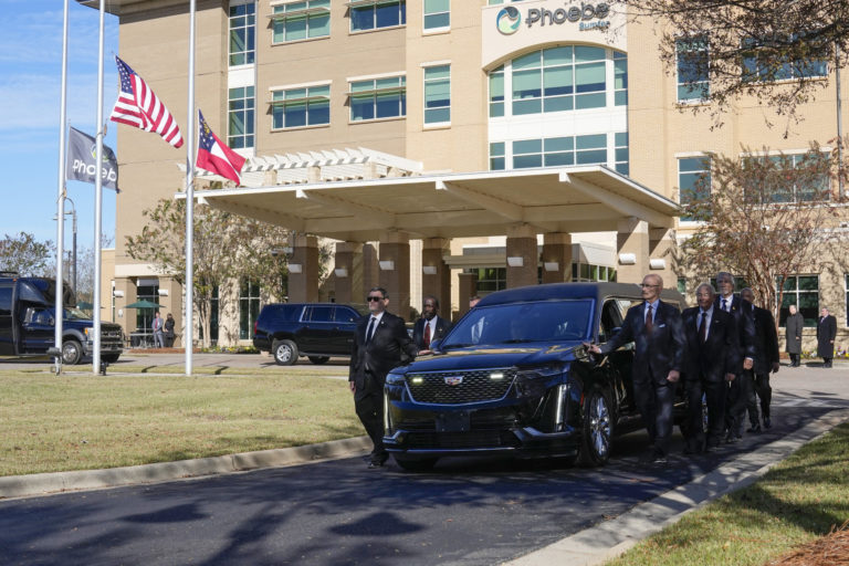 Bývalá prvá dáma zomrela Rosalynn Carterová zomrela 19. novembra. Mala 96 rokov. Bývalí a súčasní agenti USA kráčajú vedľa auta, ktoré nesie jej rakvu. Foto: SITA/AP