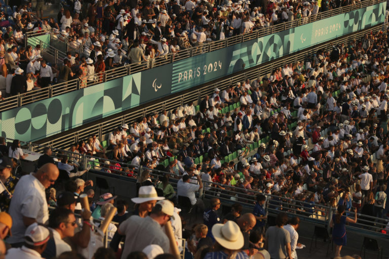 Diváci prichádzajú na otvárací ceremoniál paralympijských hier v Paríži. Foto: SITA/AP
