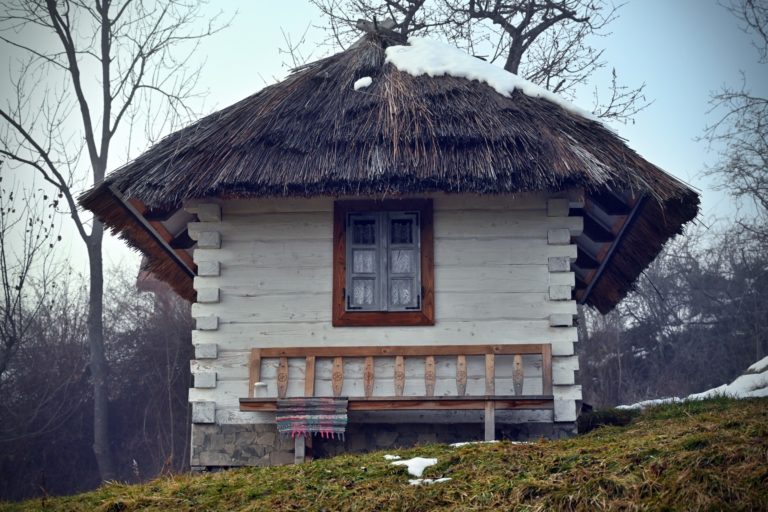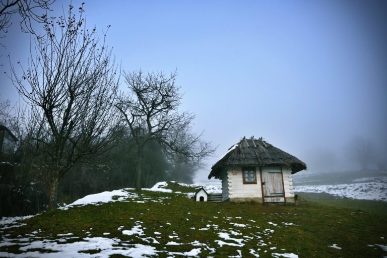 Chalúpka dedka Večerníčka, postavená ako súčasť projektu Kultúrna cesta Podpoľanie v mestskej časti Skliarovo v okrese Detva. Detva, 18. december 2023. Foto: SITA/Jakub Julény