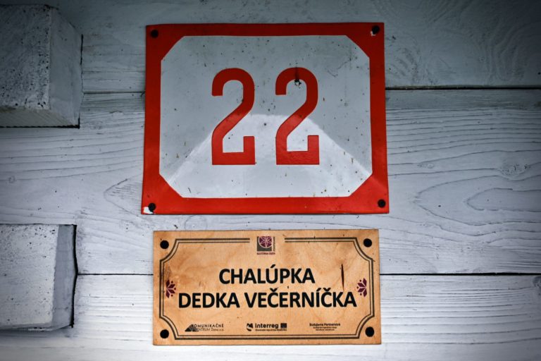 Detail Chalúpky dedka Večerníčka, ktorá je postavená ako súčasť projektu Kultúrna cesta Podpoľanie v mestskej časti Skliarovo v okrese Detva. Detva, 18. december 2023. Foto: SITA/Jakub Julény