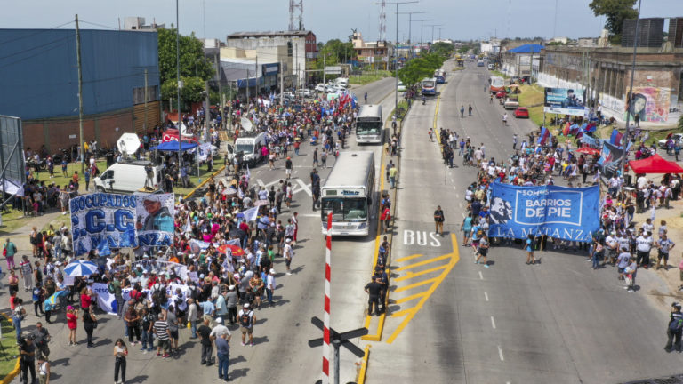 Demonštranti blokujú cesty na protest proti ekonomickým reformám prezidenta Javiera Mileiho v La Matanza. Foto: SITA/AP