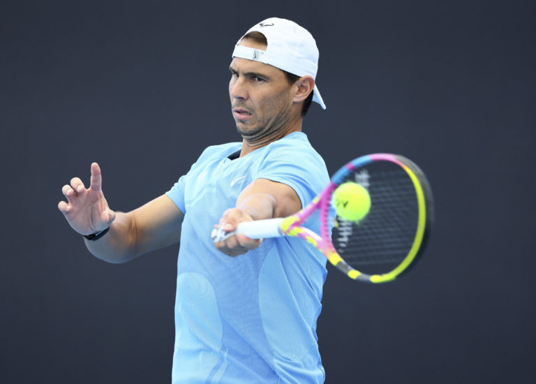Španielsky tenista Rafael Nadal počas tréningu pred tenisovým turnajom Brisbane International. Foto: SITA/AP