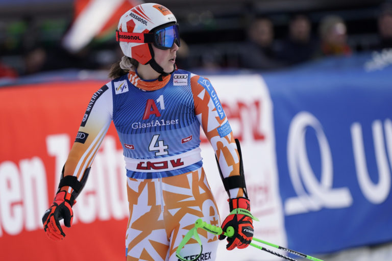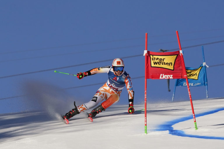 Slovenská lyžiarka Petra Vlhová počas pretekov Svetového pohára v alpskom lyžovaní v obrovskom slalome žien v rakúskom Lienzi. Foto: SITA/AP