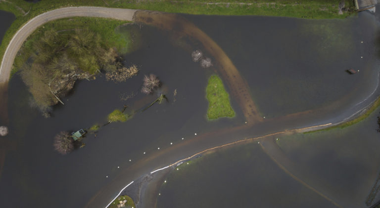 Čiastočne zaplavené oblasti parku Serengeti, Hodenhagen, Nemecko. Foto: Philipp Schulze/dpa via AP