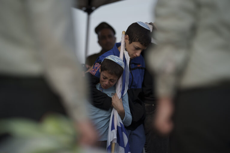 Príbuzní izraelského kapitána Neriya Ziska smútia počas jeho pohrebu na cintoríne v dedine Masu'ot Yitzhak. Foto: SITA/AP