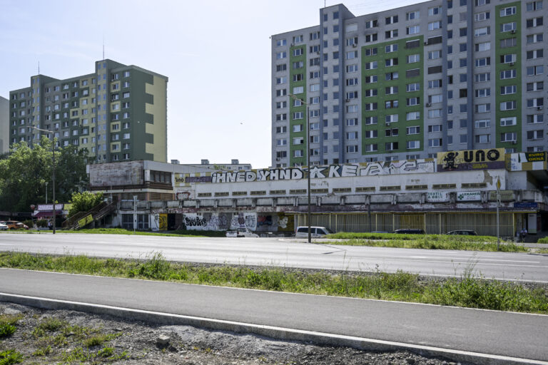 Pohľad na Malý Braník a chátrajúce bývalé potraviny UNO v bratislavskej mestskej časti Petržalka. Bratislava, 23. apríl 2025. Foto: SITA/Milan Illík