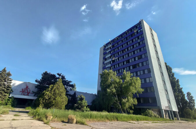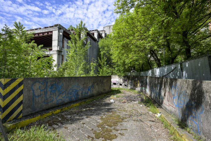 Pohľad na chátrajúci bývalý obchodný dom Ružinov, nazývaný Hirošima v mestskej časti Ružinov v Bratislave. Bratislava, 23. apríl 2025. Foto: SITA/Milan Illík