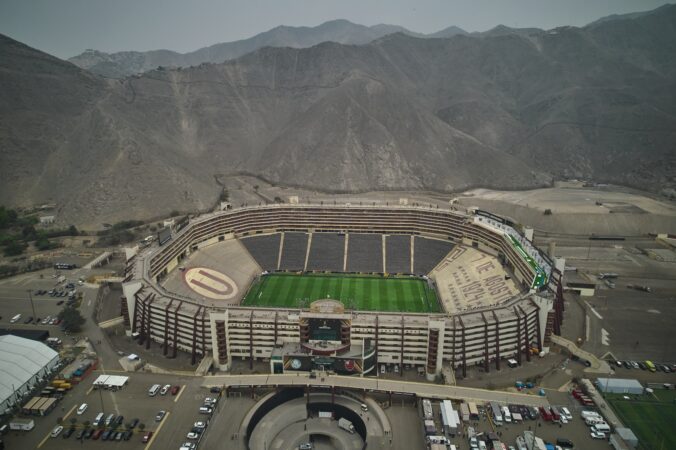 Letecký pohľad na štadión Monumental dva dni pred finálovým zápasom Copa Libertadores medzi brazílskym Flamengom a Palmeiras v Lime. Peru, 27. novembra 2025. Foto: AP Photo/Martin Mejia