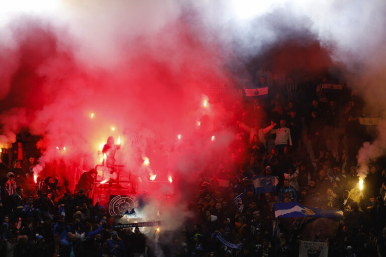 Priaznivci FC Porto odpálili pyrotechniku pred začiatkom futbalového zápasu Európskej ligy medzi Anderlechtom Brusel a Portom v Belgicku. Brusel, 28. november 2024. Foto: SITA/AP