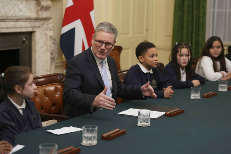 Britský premiér Keir Starmer hovorí s divákmi CBBC Newsround, spravodajskej televíznej relácie pre deti, na Downing Street 10. Londýn, 28. november 2024. Foto: SITA/AP