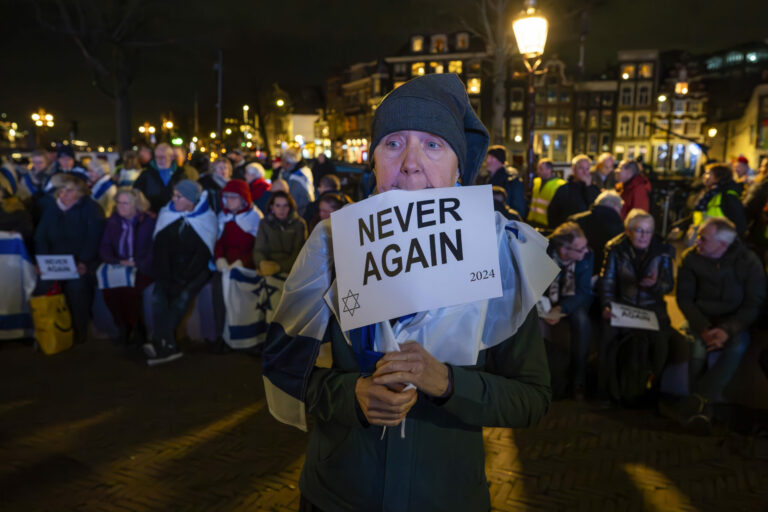 Ľudia na protestnom zhromaždení proti antisemitizmu v Holandsku. Amsterdam, 28. november 2024. Foto: SITA/AP