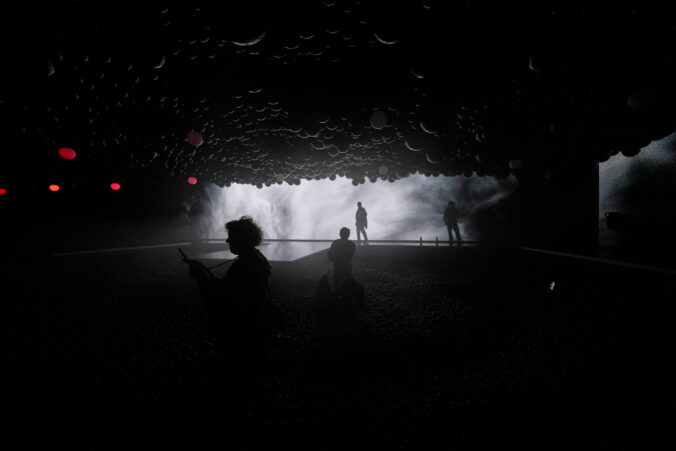 Návštevníci v miestnosti s loptičkami počas výstavy Eufória v Múzeu balónov v Sesto San Giovanni na okraji Milána. Taliansko 28. októbra 2025. Foto: (AP Photo/Luca Bruno)