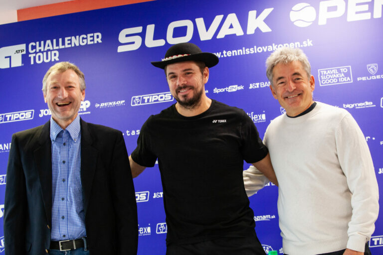 Zľava: Prezident Slovenského tenisového zväzu Miloslav Mečíř, tenisový hráč Stan Wawrinka a riaditeľ turnaja Slovak Open Igor Moška počas tlačovej konferencie Slovenského tenisového zväzu s trojnásobným grandslamovým šampiónom Stanom Wawrinkom, ktorý sa zúčastní turnaja Slovak Open 2024 v priestoroch Národného tenisového centra. Bratislava, 28. október 2024. Foto: SITA/Bokor Tomáš
