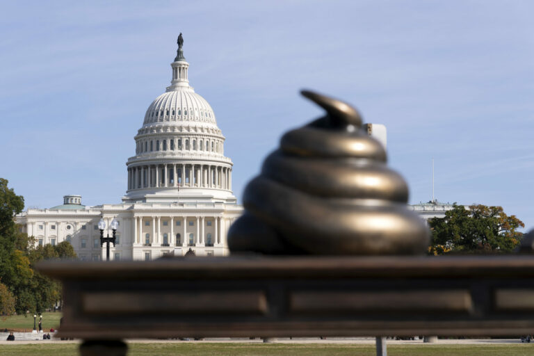 Americký Kapitol na pozadí umeleckej inštalácie s názvom The Resolute Desk v parku National Mall. Washington, 28. október 2024. Foto: SITA/AP