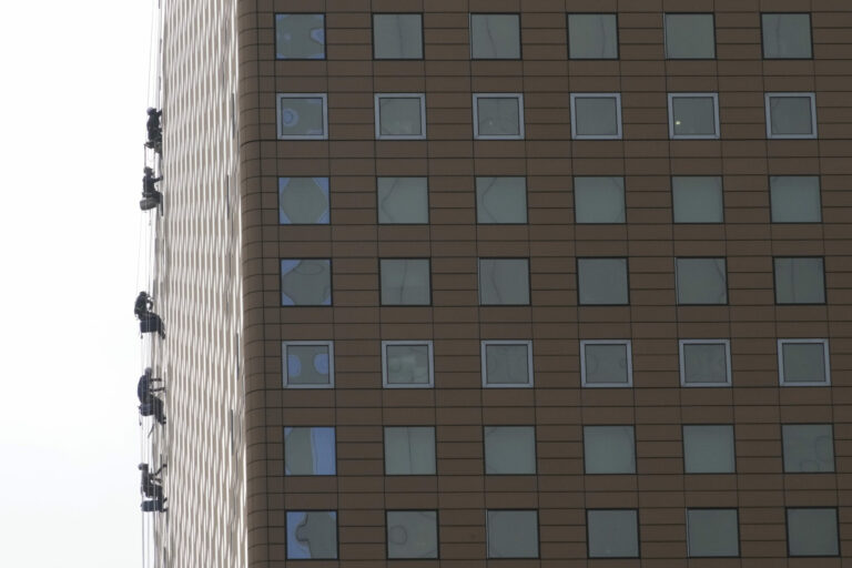 Umývači okien na jednej z juhokórejských administratívnych budov. Soul, 28. október 2024. Foto: SITA/AP