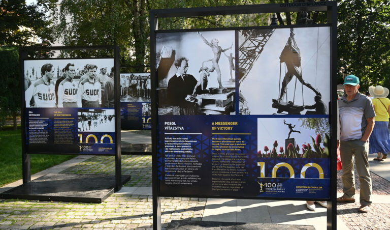 Výstava k storočnici najstaršieho európského Medzinárodného maratónu mieru (MMM) na Hlavnej ulici v Košiciach. Košice, 22. september 2024. Foto: SITA/Viktor Zamborský