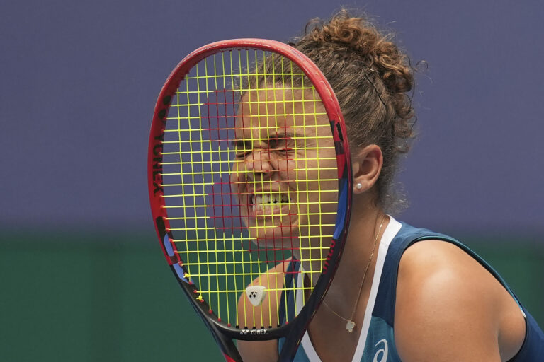Reakcia talianskej tenistky Jasmine Paoliniovej počas zápasu na turnaji China Open. Peking, 28. september 2024. Foto: SITA/AP