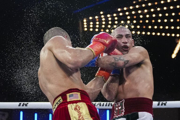 Xander Zayas z Portorika (vľavo) počas zápasu s Damianom Sosom z Mexika o titul v boxerskej strednej váhe. New York, 28. september 2024. Foto: SITA/AP