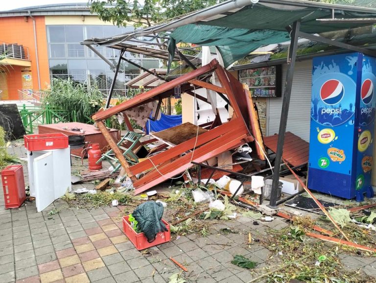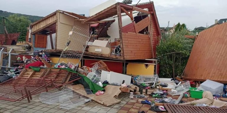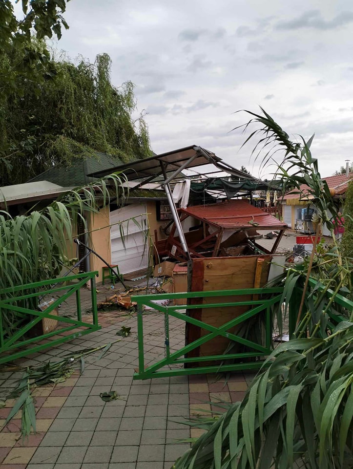 Obec Podhájska zasiahla v pondelok večer veterná smršť, najväčšie škody sú na termálnom kúpalisku. Foto: www.facebook.com.