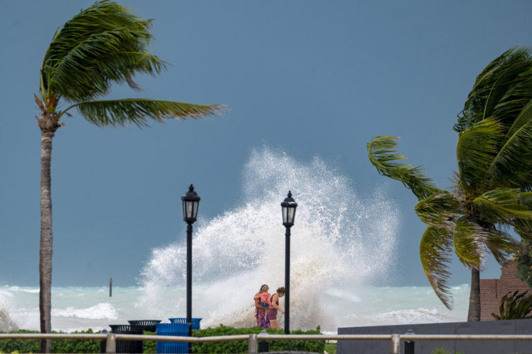 Vlny sa lámu o pobrežie na pláži Higgs Beach v Key West. Foto: Rob O'Neal /The Key West Citizen via AP.