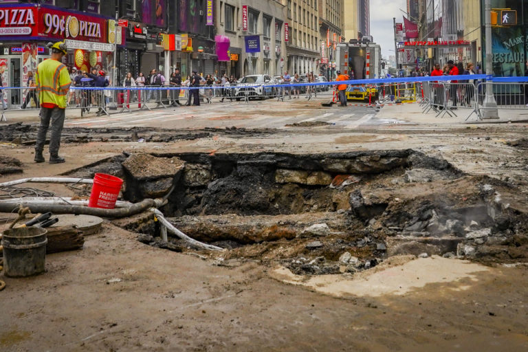 Oprava 127-ročného prasknutého potrubia na Times Square v New Yorku. Foto: SITA/AP.
