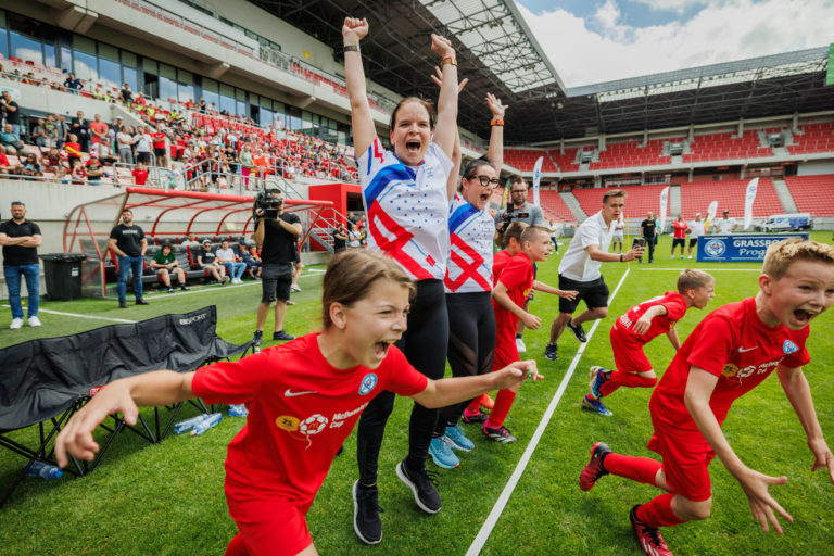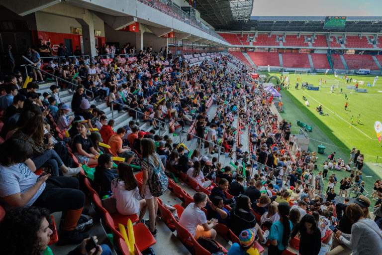 Atmosféra počas finálového zápasu 25. ročníka futbalového McDonald´s Cupu medzi ZŠ s MŠ Hurbanova z Martina a ZŠ Brezová z Piešťan, ktorý sa uskutočnil v Trnave. Trnava, 29. máj 2024. Foto: SITA/Peter Frolo/McDonald’s Cup