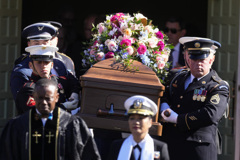Vojaci nesú rakvu po pohrebe bývalej americkej prvej dámy Rosalynn Carterovej v Baptistickom kostole Maranatha v Plainse. Foto: SITA/AP.