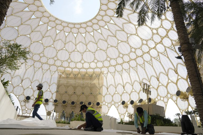 Robotníci všetko pripravujú na klimatický samit OSN COP28, ktorý sa bude konať v Dubaji v Spojených arabských emirátoch. Foto: SITA/AP.