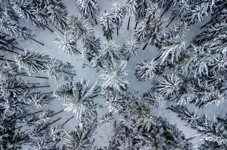 Pohľad na zasnežené ihličnany v oblasti Taunus neďaleko Frankfurtu nad Mohanom. Foto: SITA/AP.