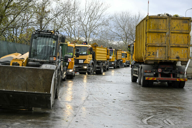 Vozidlá OLO v areáli prevádzky Zariadenie na energetické využitie odpadu (ZEVO) spoločnosti Odvoz a likvidácia odpadu (OLO) v Mestskej časti Bratislava - Ružinov, v ktorej vyrobia spaľovaním zmesového komunálneho odpadu elektrickú energiu a teplo. Bratislava, 29. november 2024. Foto: SITA/Milan Illík