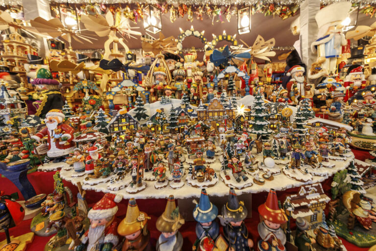 Vianočné ozdoby v stánku na námestí v Norimbergu v Nemecku, piatok 29. novembra 2024 Foto: Daniel Karmann/dpa via AP