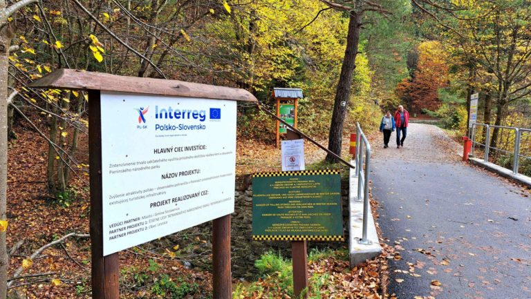 Začiatok zrekonštruovanej Pieninskej cesty v Pieninskom národnom parku. Lesnica, 29. októbra 2023. Foto: SITA/Mária Frisová