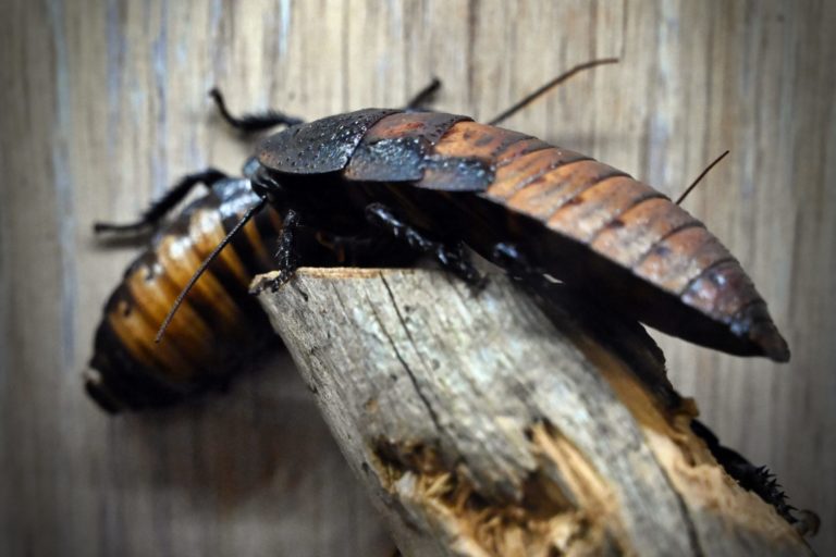 Šváb syčivý (Gromphadorhina portentosa) počas výstavy Pozoruhodné šváby - Nepanikárte! v Prírodovednom múzeu v Banskej Bystrici. Banská Bystrica, 29. október 2023. Foto: SITA/Jakub Julény