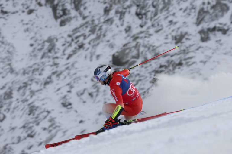 Švajčiar Marco Odermatt počas prvej jazdy obrovského slalomu mužov Svetového pohára v alpskom lyžovaní v rakúskom Soeldene. Foto: SITA/AP