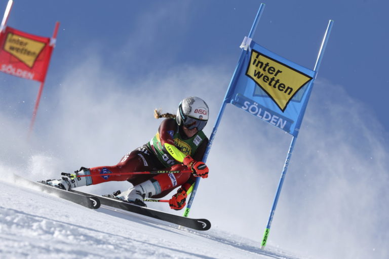 Lichtenštajnka Charlotte Linggová počas pretekov Svetového pohára v alpskom lyžovaní v obrovskom slalome žien v rakúskom Soeldene. Foto: SITA/AP