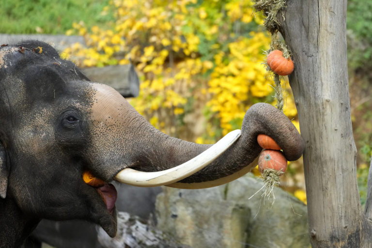 Ázijský slon v v ZOO Praha počas halloweenských osláv. Foto: SITA/AP