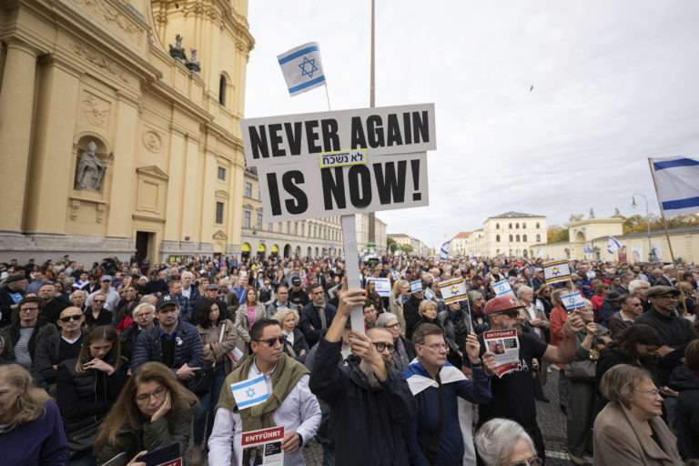 Účastník zhromaždenia "Solidarita s Izraelom - proti teroru, nenávisti a antisemitizmu". Foto: Lukas Barth/dpa via AP