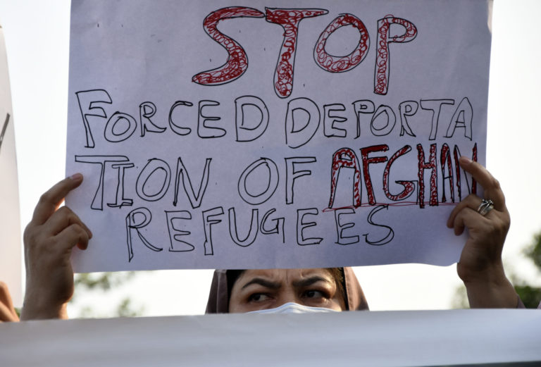 Sociálna skupina Aurat March drží transparenty počas demonštrácie proti pakistanskej vláde v Islamabade v Pakistane. Foto: SITA/AP