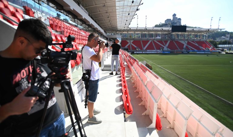 Pohľad z novej hlavnej tribúny futbalového štadióna na Sihoti v Trenčíne, kde svoje domáce zápasy hrá futbalový klub AS Trenčín. Trenčín, 29. september 2023. Foto: SITA/Tomáš Somr