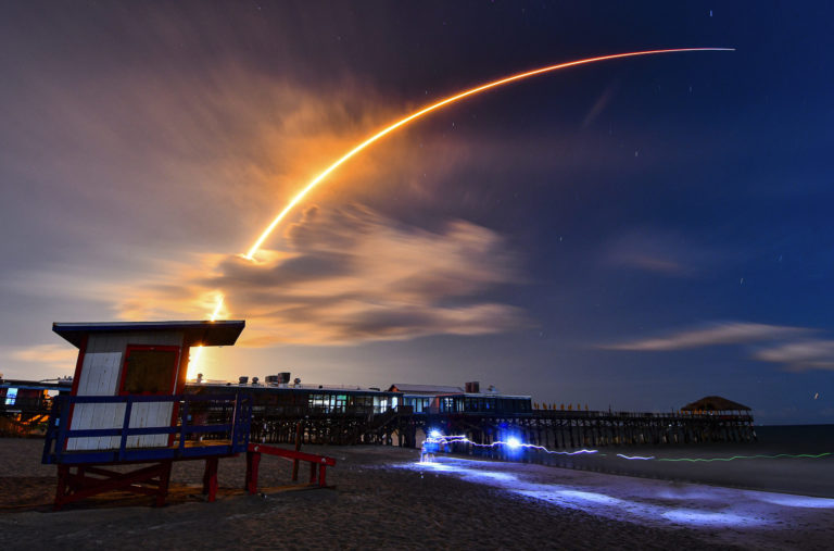 Raketa SpaceX Falcon 9 odštartovala z mysu Canaveral na Floride (3. august 2023). Foto: Malcolm Denemark/Florida Today via AP.