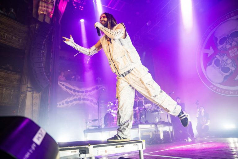 Jared Leto so skupiny Thirty Seconds to Mars počas koncertu v Chicagu. Foto: Rob Grabowski/Invision/AP.