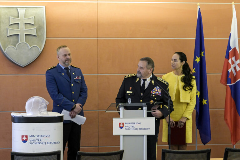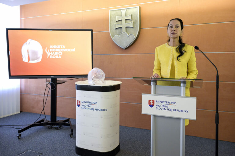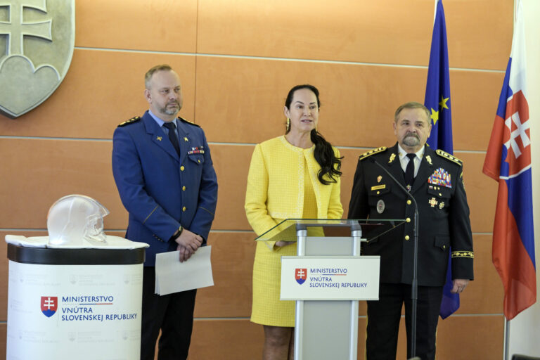 Sprava: Štátna tajomníčka MV SR Lucia Kurilovská, prezident Dobrovoľnej požiarnej ochrany Slovenskej republiky (DPO SR), podpredseda občianskeho združenia Jozef Smolinský a prezident Hasičského a záchranného zboru (HaZZ) a člen poroty ankety Dobrovoľní hasiči roka (ADHR) Adrián Mifkovič počas tlačovej konferencie Ministerstva vnútra Slovenskej republiky (MV SR) na tému: 1. ročník ankety Dobrovoľní hasiči roka (ADHR) ide do druhej fázy.