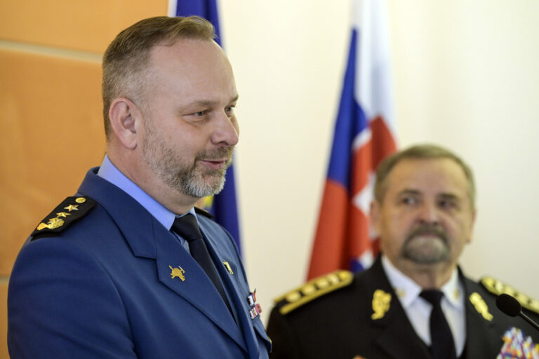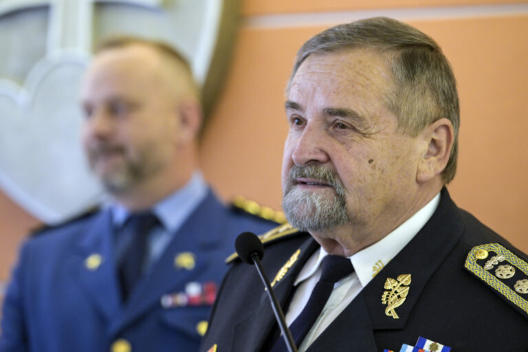 Prezident Dobrovoľnej požiarnej ochrany Slovenskej republiky (DPO SR) a podpredseda občianskeho združenia Jozef Smolinský (vpravo) počas tlačovej konferencie Ministerstva vnútra Slovenskej republiky (MV SR) na tému: 1. ročník ankety Dobrovoľní hasiči roka (ADHR) ide do druhej fázy. Bratislava, 3. február 2025. Foto: SITA/Milan Illík