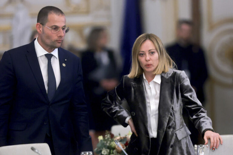 Maltský premiér Robert Abela (vľavo) a talianska premiérka Giorgia Meloni na samite v Bruseli. Foto: SITA/AP
