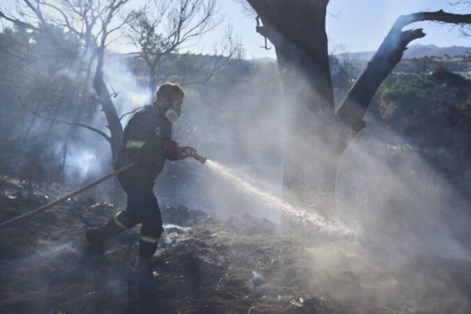 Hasenie požiaru východne od Atén v Grécku, vo štvrtok 3. júla 2025. Foto: AP Photo/Petros Giannakouris