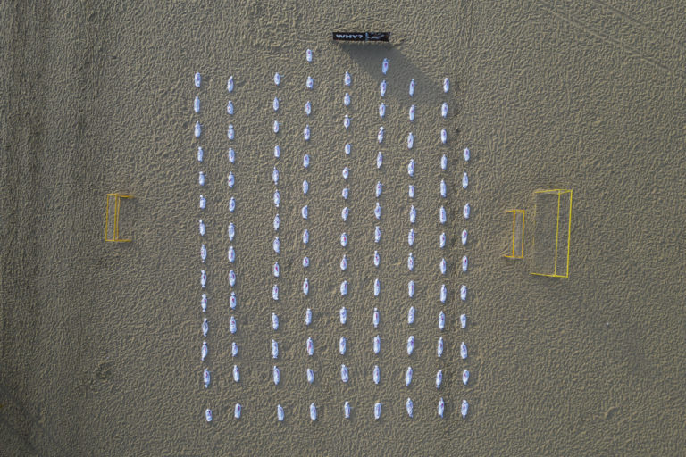Brazílski aktivisti umiestnili makety telíčok mŕtvych palestínskych detí, ktoré prišli o život počas izraelsko-palestínskeho konfliktu. Foto: SITA/AP.