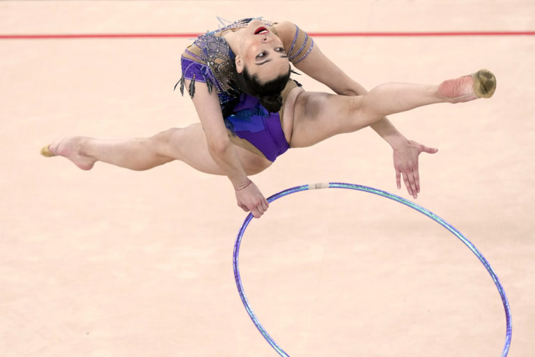 Mexičanka Ledia Juarezová súťaží vo finále modernej gymnastiky - obruč na Panamerických hrách v Santiagu v Čile. Foto: SITA/AP.