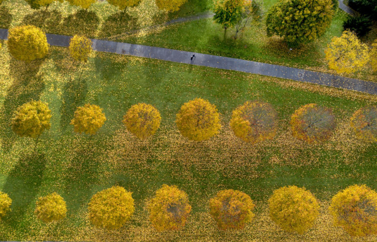 Ľudia kráčajú alejou, ktorá je zafarbená jesennými farbami vo Frankfurte nad Mohanom. Foto: SITA/AP.