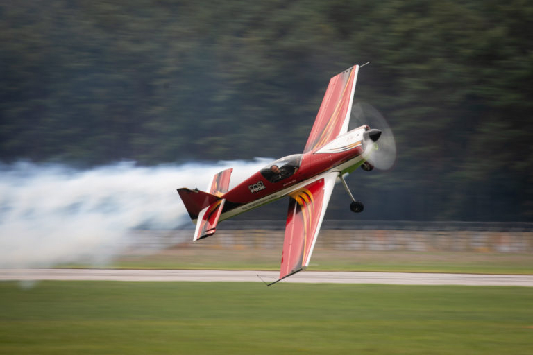 Lietadlo MXS a pilot Zoltán Véres 2 počas Medzinárodných leteckých dní SIAF 2023 na Leteckej základni Malacky - Kuchyňa. Foto: SITA/Diana Černak.