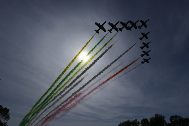 Prelet lietadiel talianskeho letectva pred štartom Veľkej ceny Talianska na okruhu v Monze. Foto: SITA/AP.